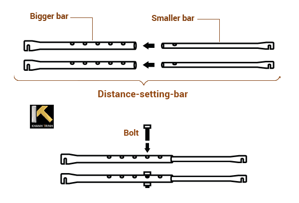 distance-setting-barはアンテナのように動作し、小さいバーを大きいバーに挿入して長さを調整できます。小さなバーと大きなバーの間の穴を合わせてボルトを通すことで、distance-setting-barの長さを固定できます。