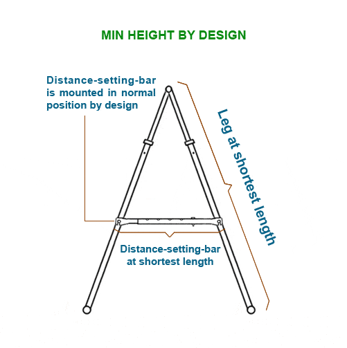 設計上の最小高さは、4本の脚を最短に設定し、2つのdistance-setting-barを最短に設定し、distance-setting-barを設計上の通常の位置に取り付けるときのKTスタンドフレームの高さを指します