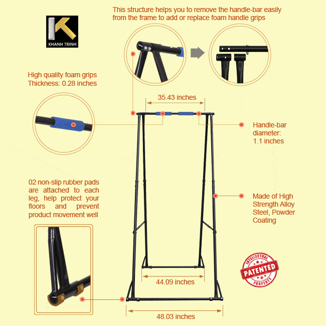安心してください、khanhtrinhvn.comで買い物をすると、ユニークで特許取得済みのKT Pull Up Bar Standの製造者と直接取引をしています。お客様の信頼は私たちの最優先事項であり、私たちはソースから直接最高品質の製品のみを提供することに専念しています!