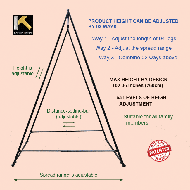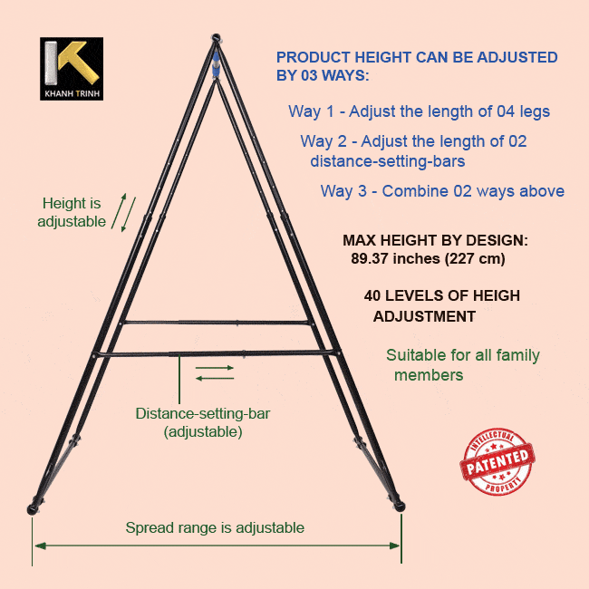 子供のスイングチェアを使用する場合、二つのdistance-setting-barsの長さを最大限に伸ばし、より高い穴に取り付けて、KTフレームの接地面積を広げます。この安全対策により、チェアはさらに揺れることができ、子供たちにもっと興奮を提供します。
