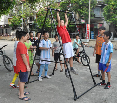 Before the puberty (15 years old for boys, 13 years old for girls), children height increase rapidly. In the puberty, the height also develops very fast. In contrast, after the puberty, the height development process starts slowing down and eventually stops growing. It depends on each person, but girls usually stop their height development at the age of 19, whereas boys at age of 25. Without any solution to enhance the height developing process and let the body develop normally, girls often stop growing taller at the age of 16, whereas boys at the age of 22. Thus, children are recommended to do pull up bar exercise and other sports – the sooner the better- in order to take advantage of “golden period” before puberty. From the age of 4, children can do exercises with pull up bar (horizontal bar) without adverse effect to the bones