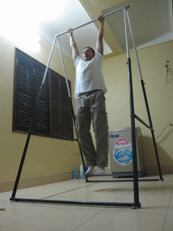 That’s really truth. At first, I did pull up bar exercises with a sole purpose: improving my height. However, just after 1 year of exercising (mainly by “chin up” movement), I got another “reward” which many friends desired: V – shape body, 6 pack abs, well-developed chest (which helps me more confident when I strip to the waist or wear T-shirt compared to the previous flat chest), weak arms become brawny as athlete. Afterwards, I recognized that pull up bar (horizontal bar) is a indispensable tool in gym. I also understood that pull up bar is a combination of many sports. When you swing on the bar or do “chin up” movement, you practice your hand muscle with “dumbbell” which is equal to the body weight. Chest muscles and shoulder muscles are shrunk and stretched as spring wires. When you pedal, you are simulating the movements of cycling or swimming. When you shake the hip, it means that you are exercising to slimming your waist as playing with a hoop. When you chin up or keep your legs perpendicular to the back, abs becomes solid and 6 pack muscles; Back ligaments become more resilient, spine is more flexible like practicing artistic gymnastics.